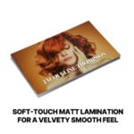 Matt lamination provides a non-reflective finish with zero shine. It adds a smooth texture to the surface while preserving the integrity of the print without any colour loss. This process enhances both the tactile and visual appeal of the printed material, offering a sophisticated and durable result.